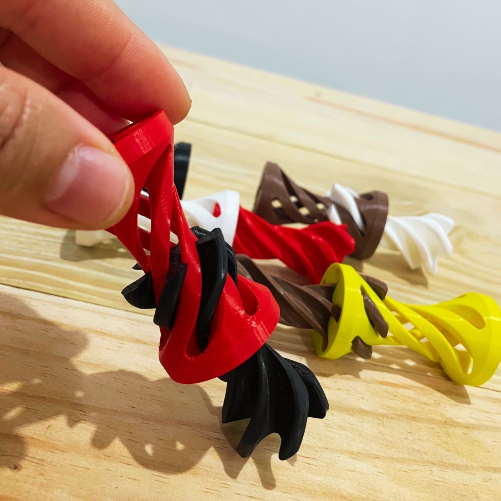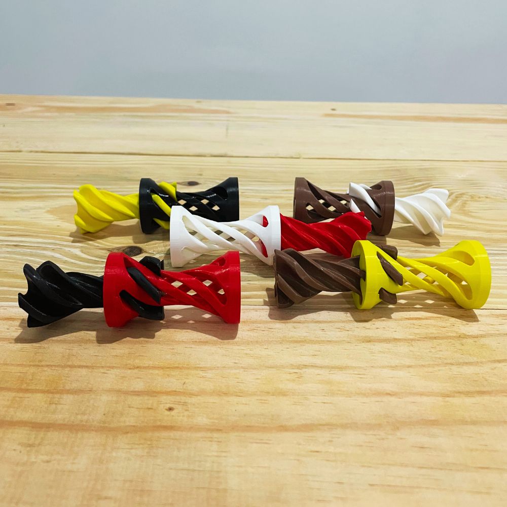Produzido em impressão 3D com plástico PLA, material resistente, leve e sustentável, o brinquedo possui acabamento colorido e visual atraente, despertando o interesse tanto de crianças quanto de adultos. O movimento de encaixe ajuda no desenvolvimento da coordenação motora fina, da percepção espacial e da concentração.