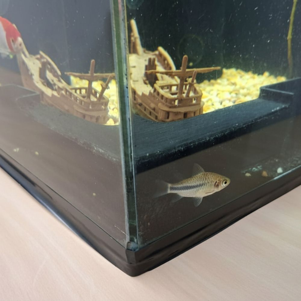 Fabricada em impressão 3D com plástico PLA atóxico, a peça é leve, resistente e possui formato que permite encaixe nas bordas do aquário. Além de servir como abrigo e local de exploração para os animais, também se torna um elemento interessante para quem gosta de acompanhar o comportamento dos peixes de um ângulo diferente.