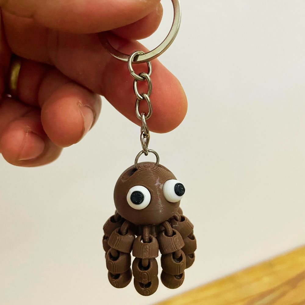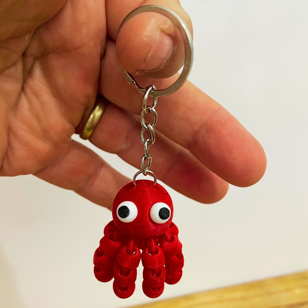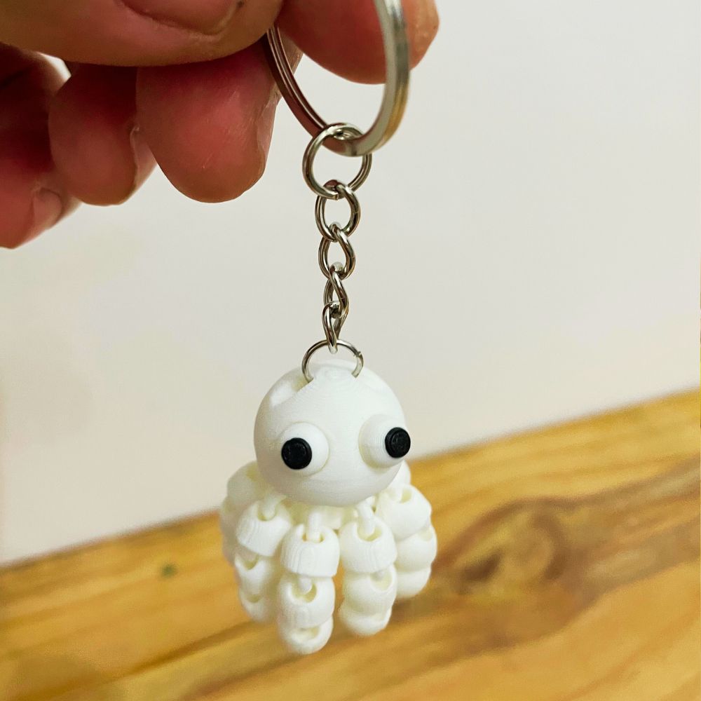 Leve mais personalidade para suas chaves, mochila ou bolsa com o Chaveiro Polvo Articulado impresso em 3D! Esse pequeno polvo é totalmente articulado, com tentáculos móveis que dão um visual divertido e interativo, tornando cada peça única e irresistível.